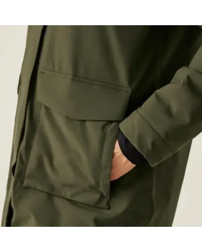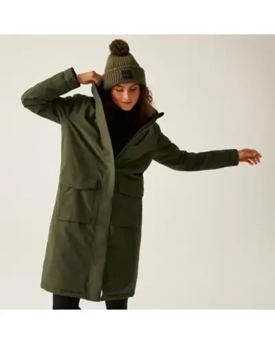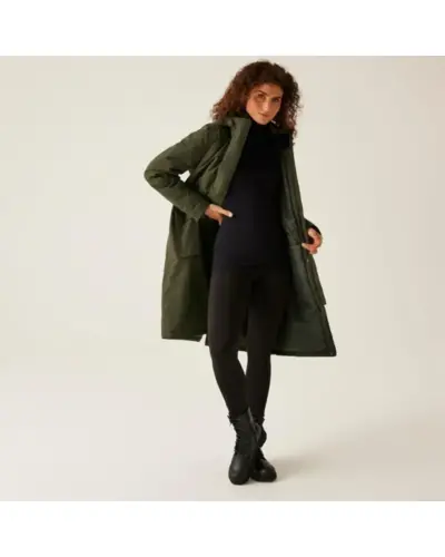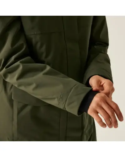 Női bélelt meleg kabát 15000 vízálló és lélegző, Vízálló és lélegző Isotex 15000 újrahasznosított 100% poliészter rugalmas anyag, Légáteresztési érték: 10,000 g/m?/24 óra, Tartós vízlepergető bevonat, Ragasztott varratok a maximális vízállóság érdekében, Közepes súlyú újrahasznosított Thermoguard szigetelés, Puha polár bélés a felsőtesten és a kapucniban, 100% poliészter taft bélés az alsótesten, Belső biztonsági zseb, Beépített kapucni rejtett állítókkal, Állítható húzózsinóros derék, Hosszabb fazon, 2 alsó, kettős nyílású foltzseb, Belső viharmandzsetták, Ez a kabát tökéletes választás a hideg és nedves időjárási körülményekre. Az Isotex 15000 anyag , rugalmas, vízálló és lélegző, így kényelmes viseletet biztosít, miközben a Thermoguard szigetelés és a , puha polár bélés melegen tartja a viselőjét. A hosszabb fazon és a praktikus zsebek extra kényelmet , és funkcionalitást nyújtanak. A kabátot újrahasznosított anyagokból készült