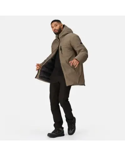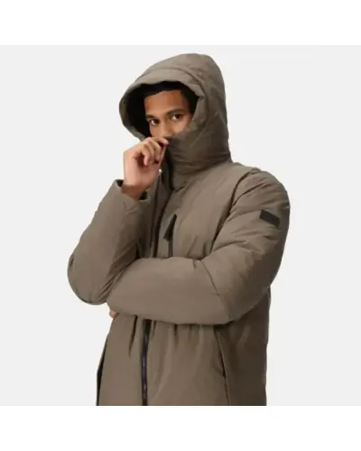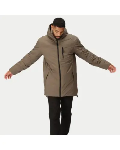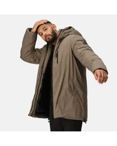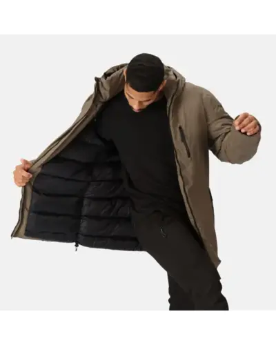 férfi télikabát 8.000 mm, Isotex - 8.000 mm-ig vízálló és lélegző, rugalmas 100% poliészter anyag, Lélegző érték: 8.000g/m2/nap, Tartós víztaszító felület, Ragasztott varrások, Steppelt poliamid bélés , Újrahasznosított, tollhatású, pehelytapintású töltet, Kb. 45db 500ml-es mûagyag palackból készült, újrahasznosított anyag és töltet, Nehéz töltet, Bővíthető, rejtett részen állítható kapucni, Két cipzáros zseb a mellén, Két kettős bejáratú zseb az alján, az oldalsó bemenetnél kézmelegítős zseb, Cipzáros biztonsági belső zsebbel, Bordázott, belső szélfogó mandzsetta, Állítható, húzózsinóros alsó szegély