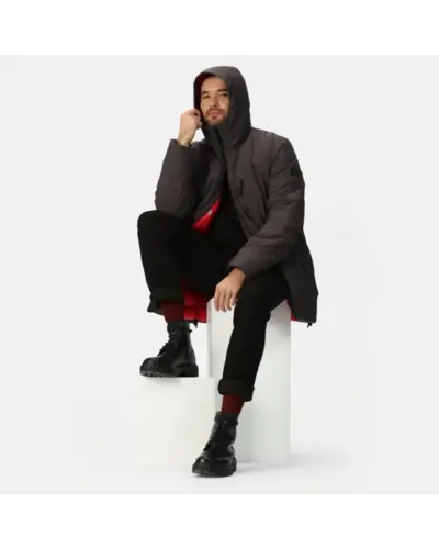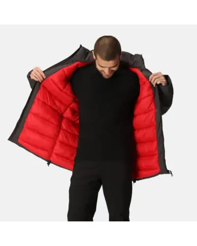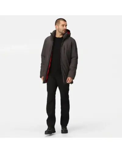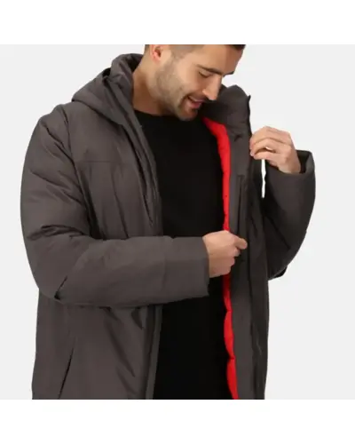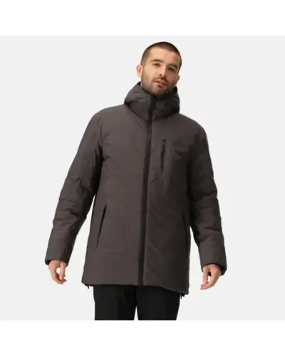 férfi télikabát 8.000 mm, Isotex - 8.000 mm-ig vízálló és lélegző, rugalmas 100% poliészter anyag, Lélegző érték: 8.000g/m2/nap, Tartós víztaszító felület, Ragasztott varrások, Steppelt poliamid bélés , Újrahasznosított, tollhatású, pehelytapintású töltet, Kb. 45db 500ml-es mûagyag palackból készült, újrahasznosított anyag és töltet, Nehéz töltet, Bővíthető, rejtett részen állítható kapucni, Két cipzáros zseb a mellén, Két kettős bejáratú zseb az alján, az oldalsó bemenetnél kézmelegítős zseb, Cipzáros biztonsági belső zsebbel, Bordázott, belső szélfogó mandzsetta, Állítható, húzózsinóros alsó szegély